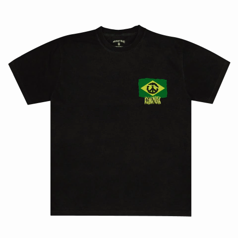 Camiseta 100% algodão, gramatura de 180 gramas, reforço de ombro a ombro e gola canelada 2×1 com 2 cm de altura.